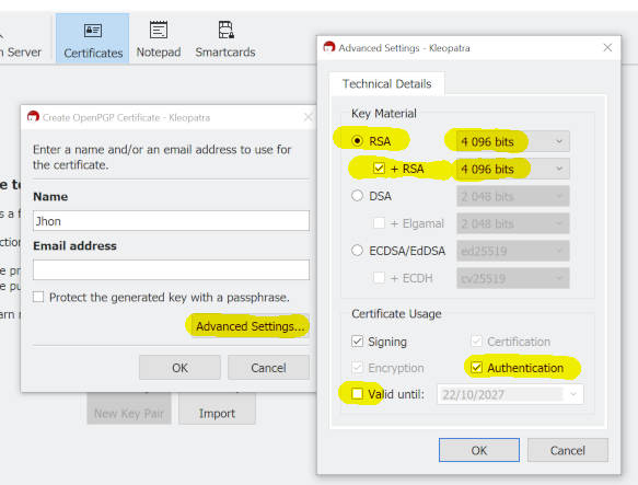 - Go to Settings > Configure Kleopatra > Crypto Operations